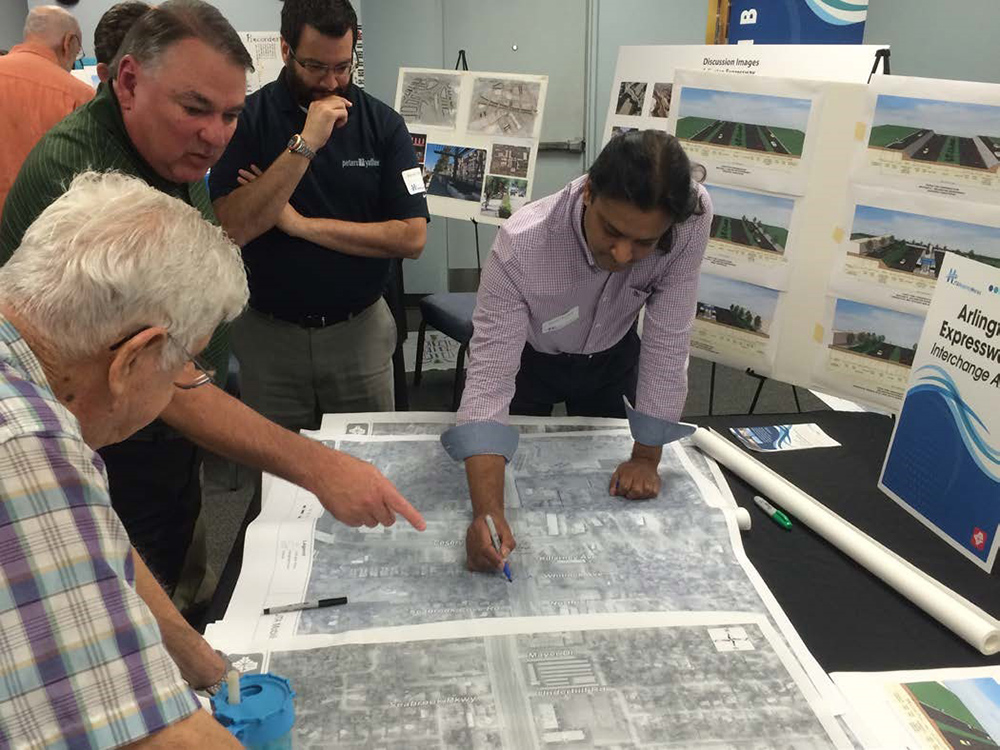 Part of the design process included two public design charrettes to enable stakeholders the opportunity to share ideas and provide feedback with respect to improving multimodal conditions in the corridors. Leveraging the skills of our Design Hub, a collaborative nation-wide network of design professionals who come together to solve complex city planning and design challenges, our team of planners, engineers and landscape architects employed a variety of tools as a part of the design and public engagement process. A combination of 3D modeling and hand sketching was used to communicate complete street and infill redevelopment concepts to the community. Before and after diagrams easily enabled stakeholders to envision how change could affect and improve their neighborhood and quality of life.