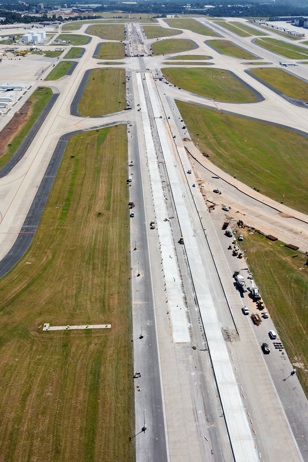 Runway 8L-26R is ATL’s northernmost runway. Constructed in 1984, this 9,000-foot-long, 150-foot wide runway welcomes more than 500 domestic, international and cargo flights to ATL each day. Due to the huge volume of traffic, runway construction projects present unique challenges. Every day a runway is out of service costs the airlines millions in increased fuel costs, due to delays.