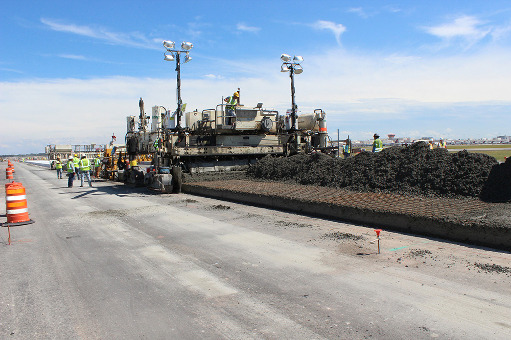 Another design decision that helped expedite construction was the pavement section design itself. The previous pavement section was composed of 16 inches of Portland Cement Concrete (PCC) on six inches of cement-treated base and six inches of soil cement. By converting the pavement section to 20 inches of PCC on two inches of asphalt leveling base, the construction process could be further expedited while providing the same level of structural support.